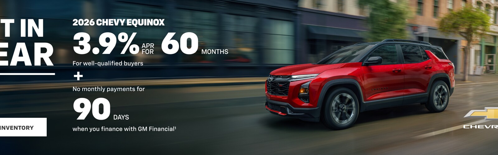 (1) Example based on national average vehicle selling price. Each dealer sets its own price. Your payments may vary. Must show proof of a current lease of a 2021 model year or newer vehicle and be a current lessee for at least 30 days prior to the new vehicle sale. Customer remains responsible for current lease payments. Payments are for a 2026 Chevy Equinox LT AWD with an MSRP of $34,045. 36 monthly payments total $10,035. Closed-end lease. Option to purchase at lease end for an amount to be determined at lease signing. GM Financial must approve lease. Late payment and early termination fees apply. Lessee is responsible for insuring the lease vehicle. Lessee pays for maintenance, repairs, excess wear and disposition fee of $395 or less at end of lease. Payments may be higher in some states. Not available with some other offers. Take new retail delivery by 3/2/26.
